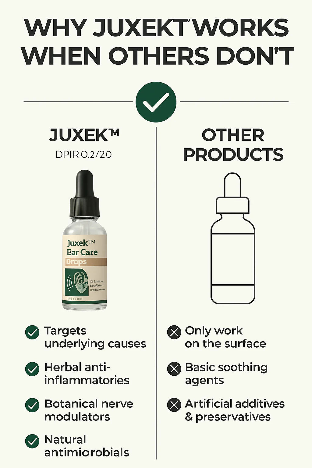 “As a naturopath with a focus on integrative ENT care, I see many patients who’ve tried drops that either dry the ear or mask symptoms. What I like about Juxek™ is its layered approach: it soothes irritation, improves circulation, and helps quiet nerve-related signals—all without pharmaceutical side effects.”